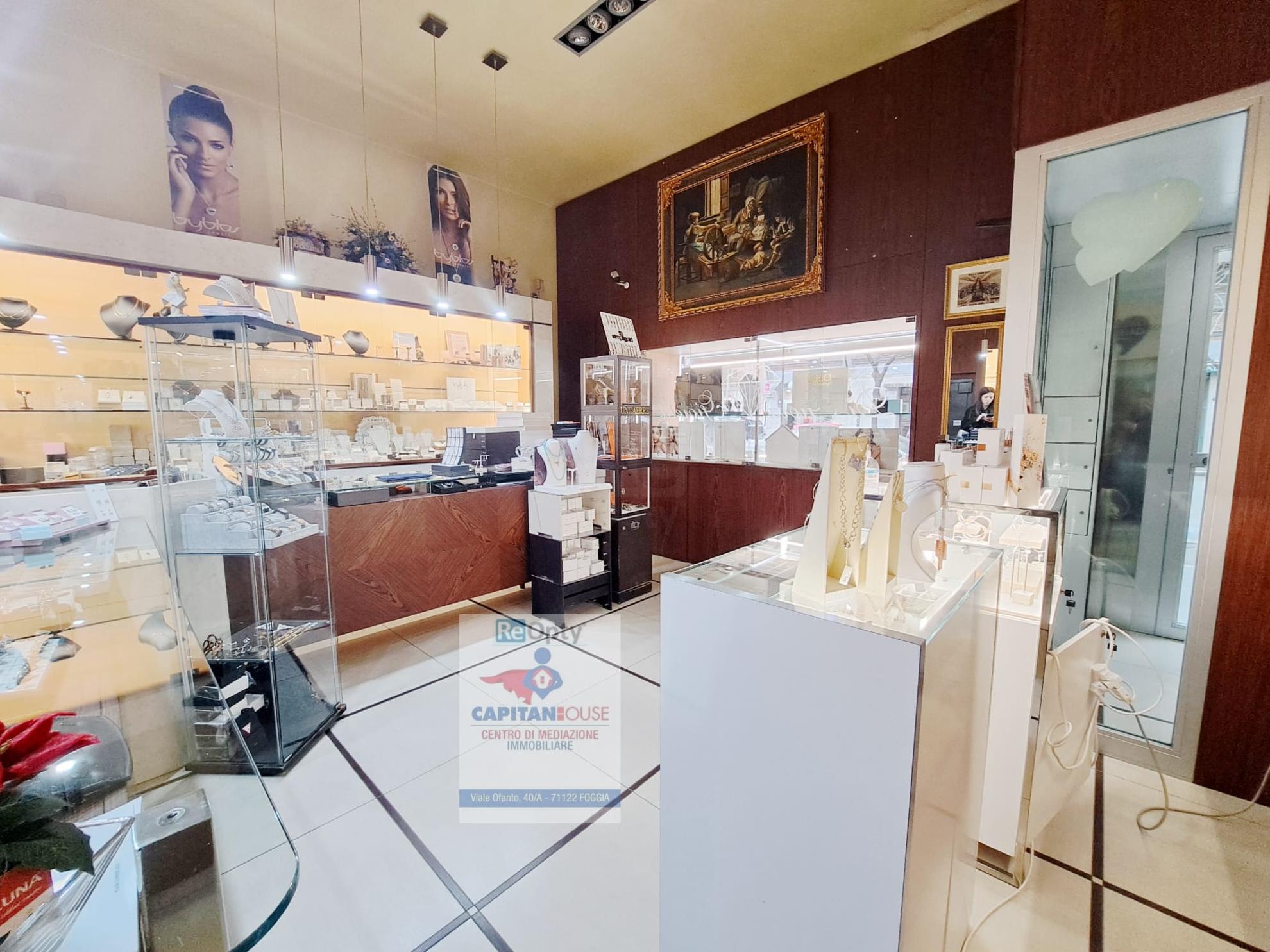 Proponiamo in vendita nella città di Foggia e piu precisamente in Corso Pietro Giannone una delle zone considerata la via dedicata allo shopping e di alta visibilità un locale commerciale di 70mq circa attualmente locato ad un attività di gioielleria . L'immobile posto al piano stradale si presenta in ottimo stato e si compone di due vani di cui uno soppalcato ed il bagno.