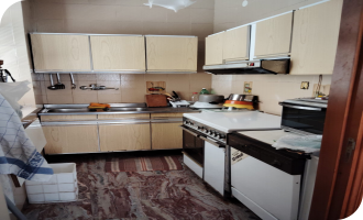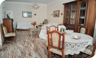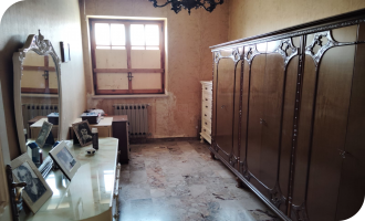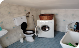 Il primo piano comprende 5 vani di cui una camera da letto, due camerette un’ampia sala e una cucina abitabile con tinello. L’ambiente è luminoso grazie alle finestre presenti in ogni stanza e inoltre un balcone collega la sala e la cucina.