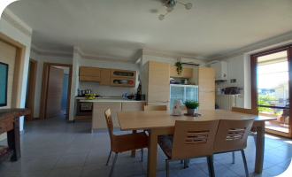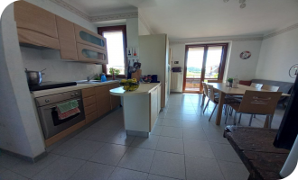 -luminosa zona giorno con sala e cucina tinello;