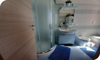 -bagno finestrato con rifiniture curate e doccia.
